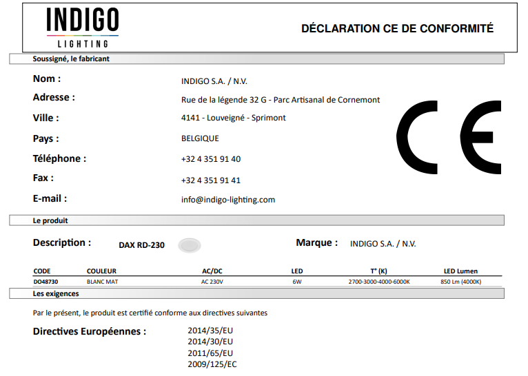 Ce spot led est IP65 RT2012 & RE2020 , peut etre installé dans toutes les pièces cuisine, salon, salle de bain et avant toit extérieur