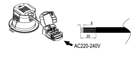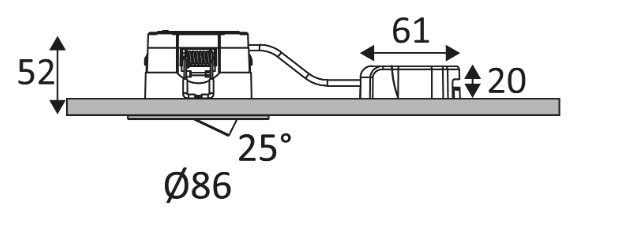 Son encastrement est de 68mm correspondant aux scies cloches classiques utilisées pour l'encastrement de l'appareillage mural.
