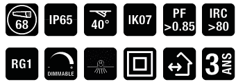 Efficacité lumineuse de 577 à 616 lumens avec un indice de rendu des couleurs (IRC) supérieur à 80